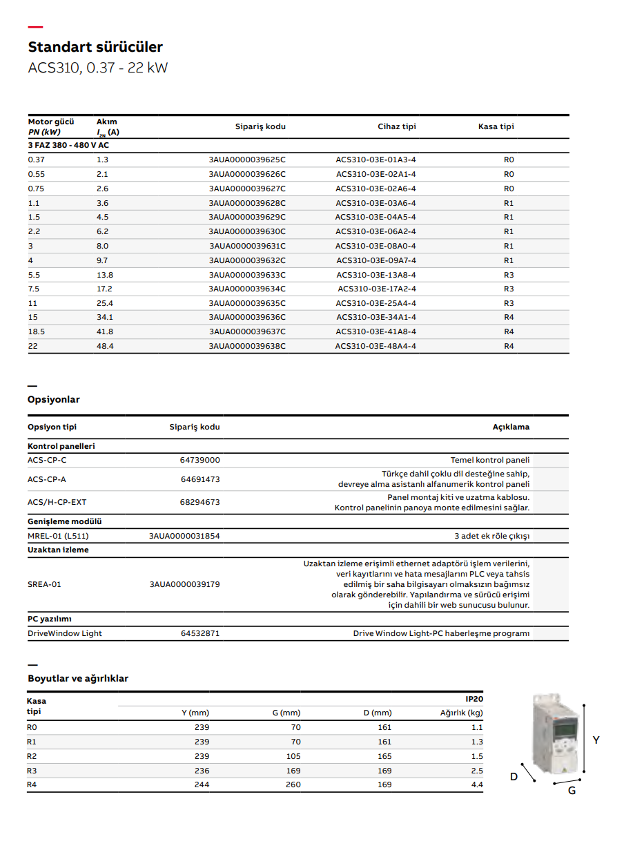 Kategori : Ac sürücüler, Abb ac sürücüler, Acs310 serisi