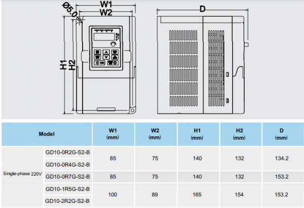 GD10-2R2G-S2-B INV 1F 2.2kW 10A 220V